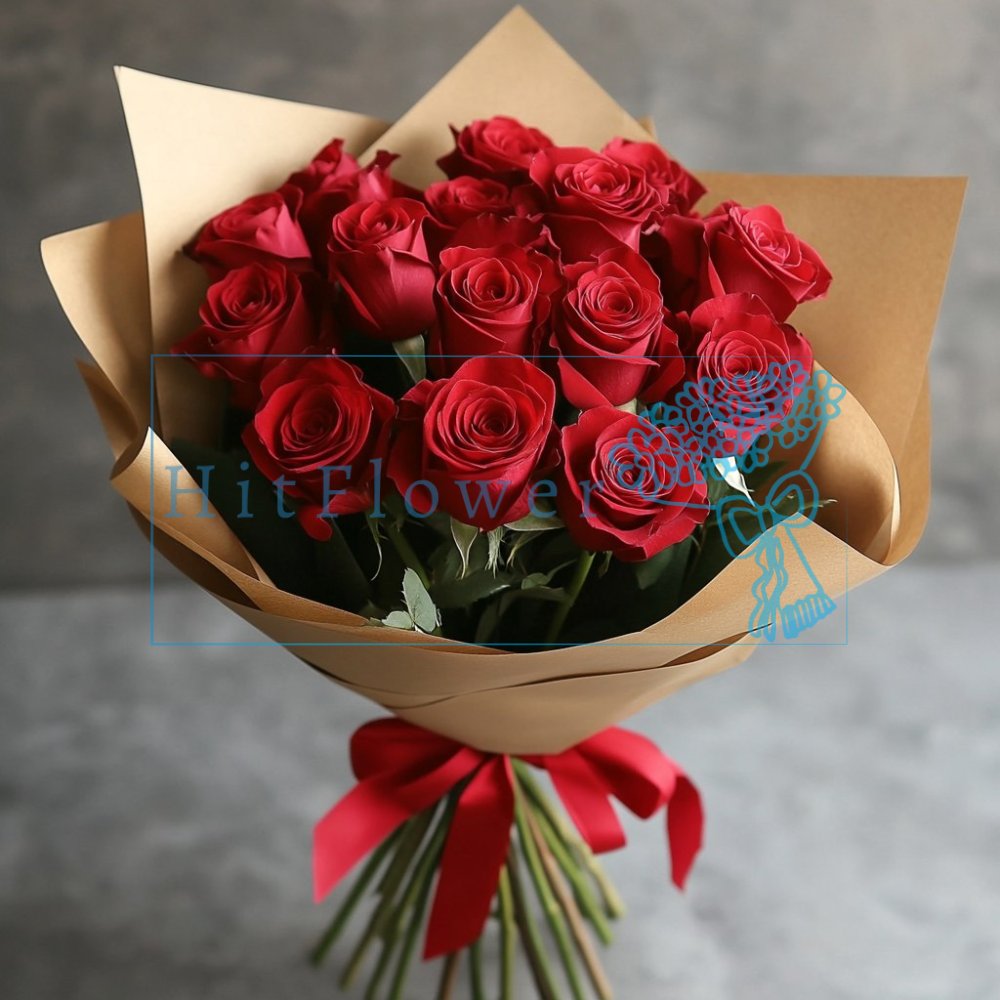 В основе композиции лежит густая россыпь красных кустовых роз, создающих невероятную текстуру и объем. Мы отказались от сложного декора в пользу экологичного крафта. Такое решение превращает классические красные цветы в современный стильный аксессуар. Крафт приглушает торжественность, добавляя нотки уюта и рустикального шика. Это универсальный подарок: он будет уместен и на свидании, и в качестве комплимента коллеге, и как украшение домашнего интерьера.